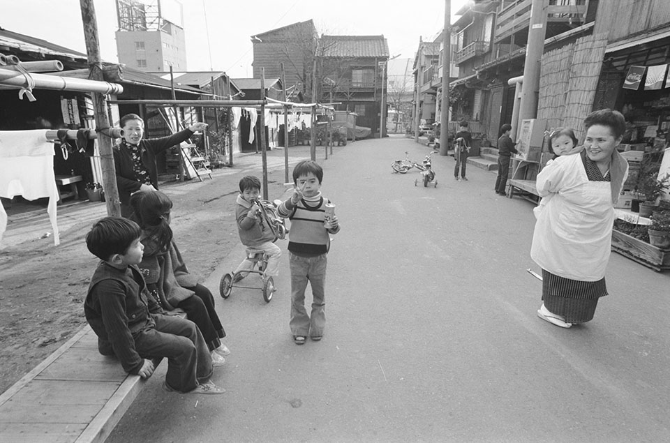 日だまりで遊ぶ子供たち。変貌する臨海地域にあって、ここ佃島には昔ながらのゆったりした時間が流れていた。