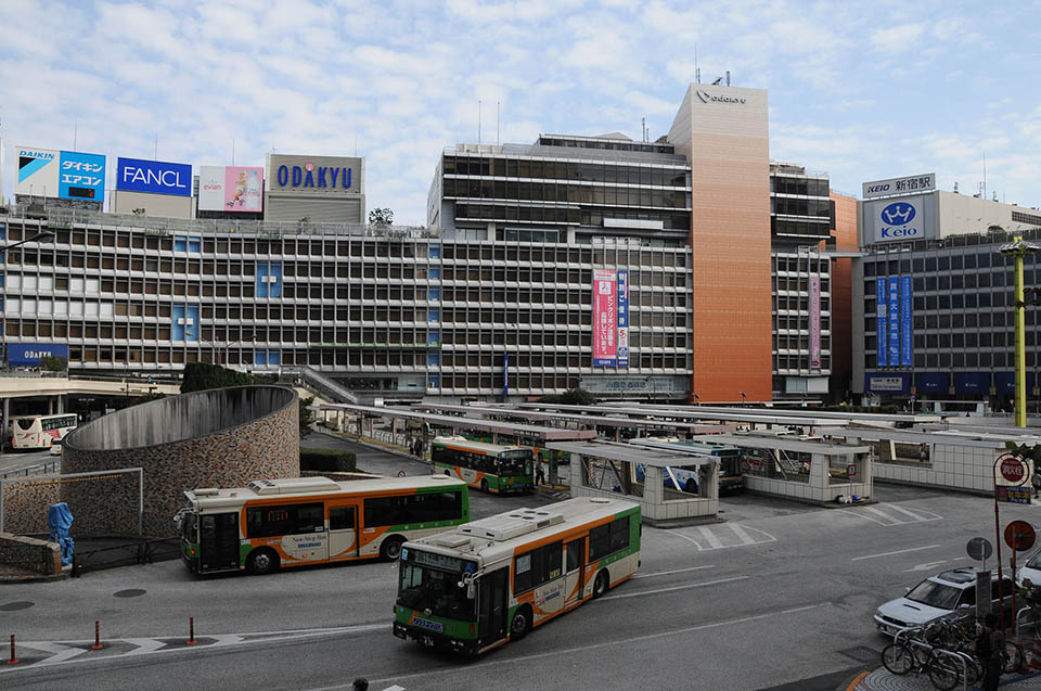 今では小田急や京王の駅ビルが壁となって連なる新宿駅西口も、かつては東口の景色や電車の走る姿を見ることができた。