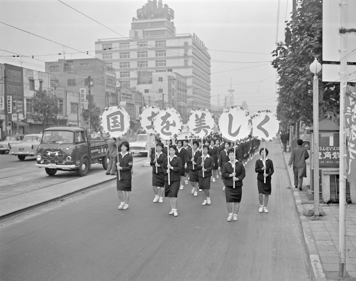 「首都美化はオリンピックの一種目」、「一千万人の手で東京をきれいに」といったスローガンを掲げて首都美化運動を広げていった。