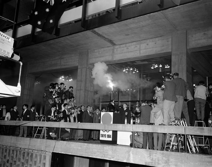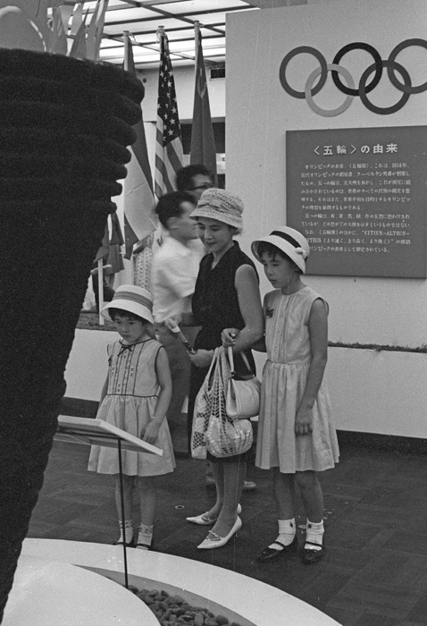 開催前の夏休み、「聖火がそこまでやってきた」と題したオリンピック展が日本橋三越で開催され、親子連れなどでにぎわった。