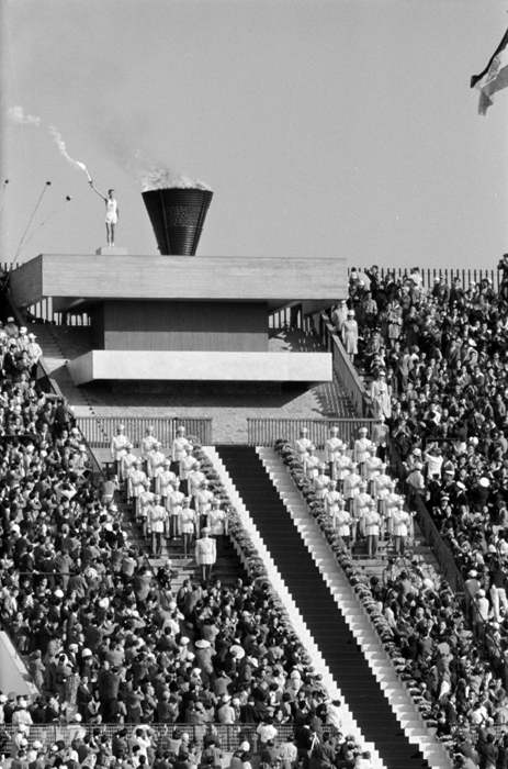 聖火が、最終ランナーの手で、163段の階段を登りきった聖火台に灯された。