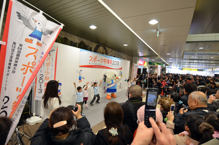 スポーツ祭東京2013のマスコットキャラクター「ゆりーと」をイメージした「ゆりーとダンス ニッコリ・ファイト!」が、JR立川駅構内コンコースで披露された。