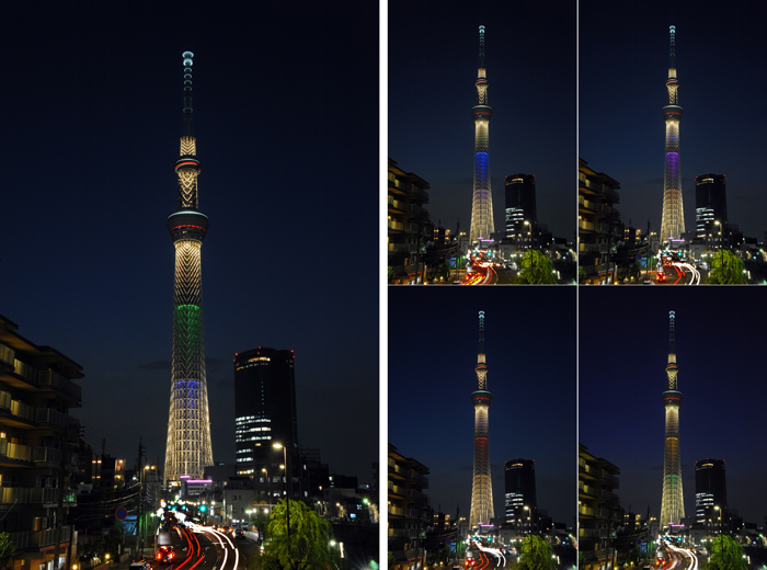 2020年オリンピック・パラリンピック開催都市決定1年前のこの日、東京スカイツリーも5色にライトアップ。