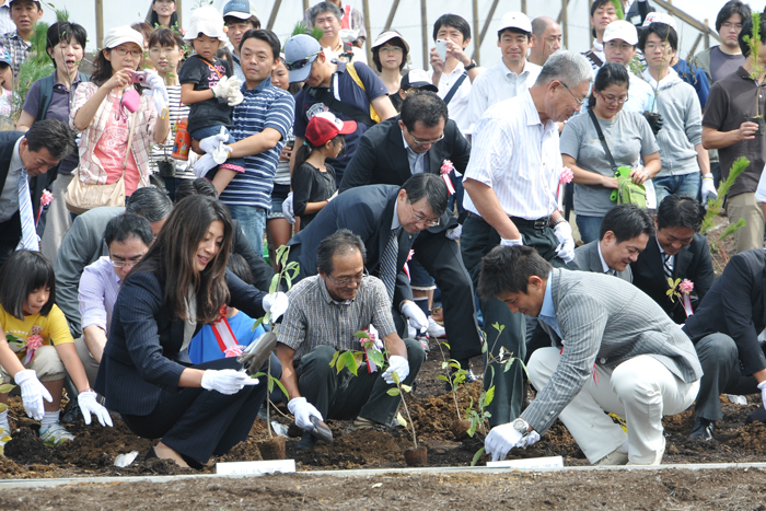 招致実現のため、「海の森」でオリンピックメダリストを招いて植樹イベントを開催。埋立地を緑溢れる森に生まれ変わらせることを願った。