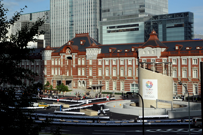 創建時の姿に復原されたJR東京駅丸の内駅舎前の換気塔に、JR東日本の協力により2020年オリンピック・パラリンピック招致PRのシートを掲出した。