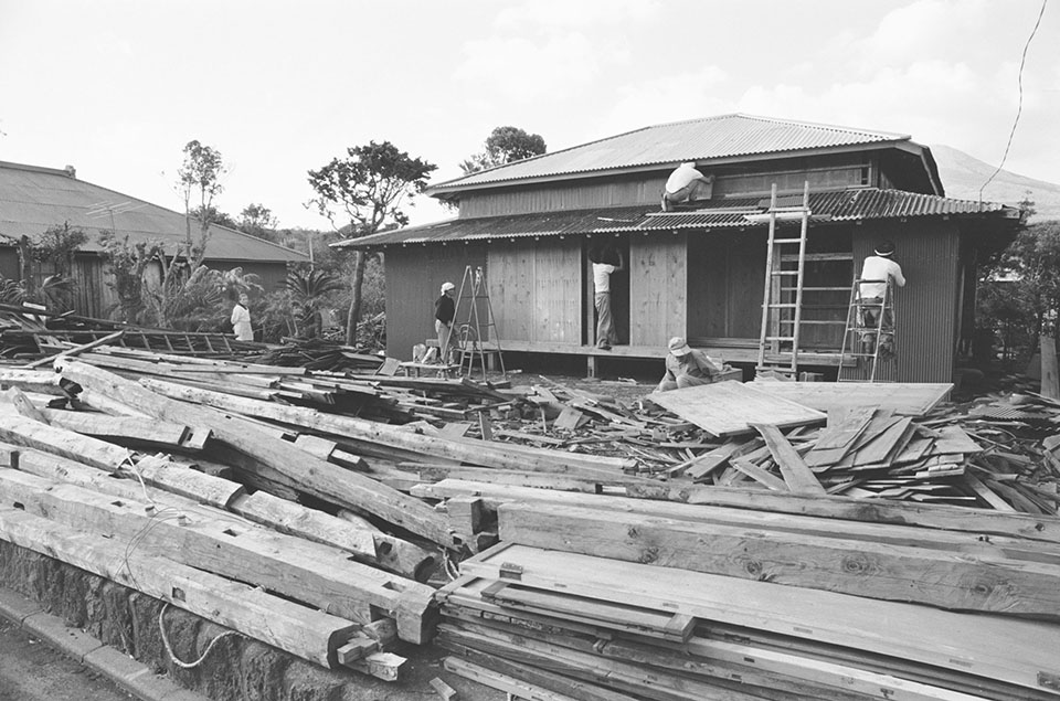 台風で被害を受けた八丈島の住宅(八丈町)1975年11月
