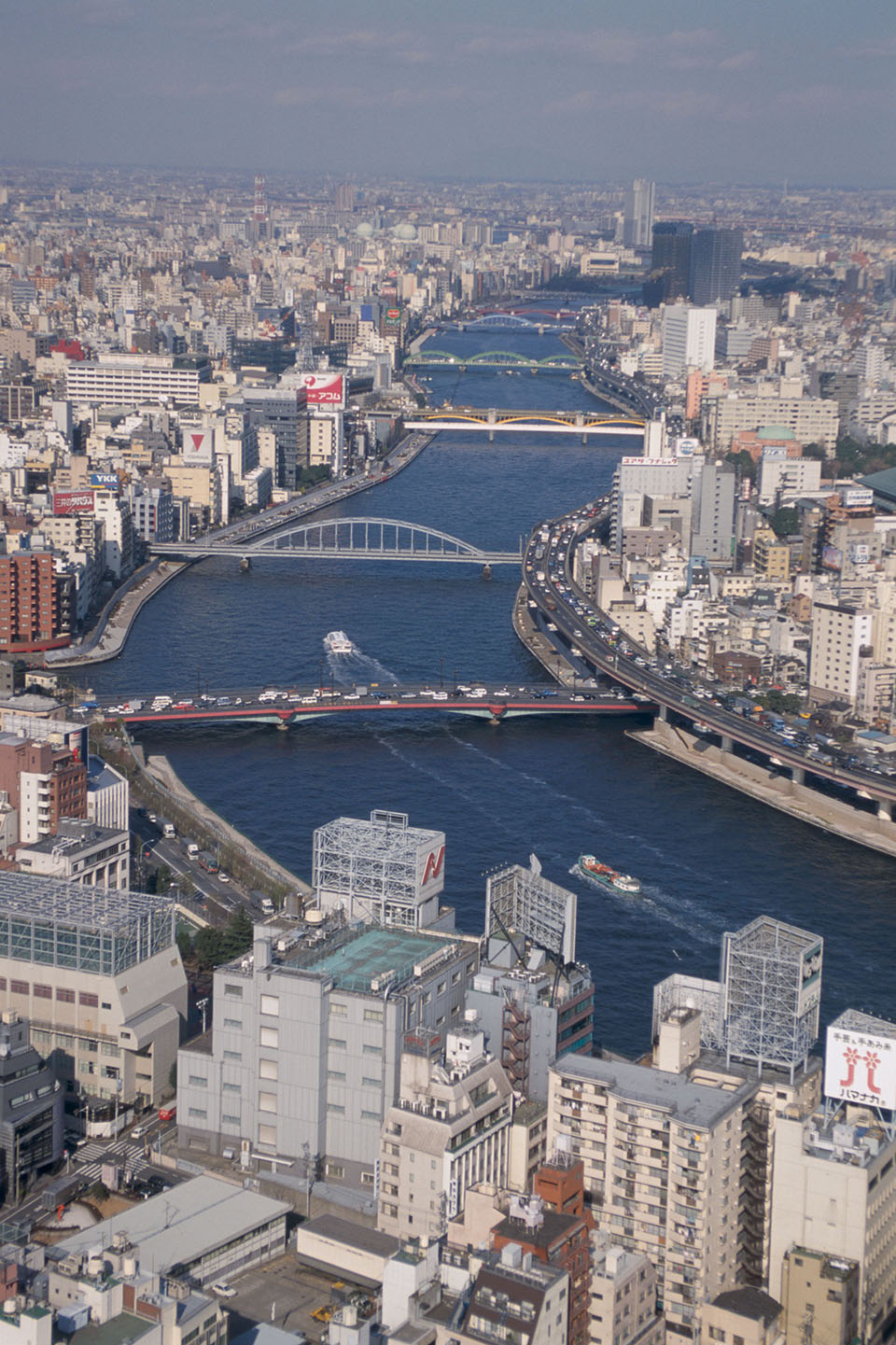 吾妻橋の高層ビルからの隅田川 1990年12月
