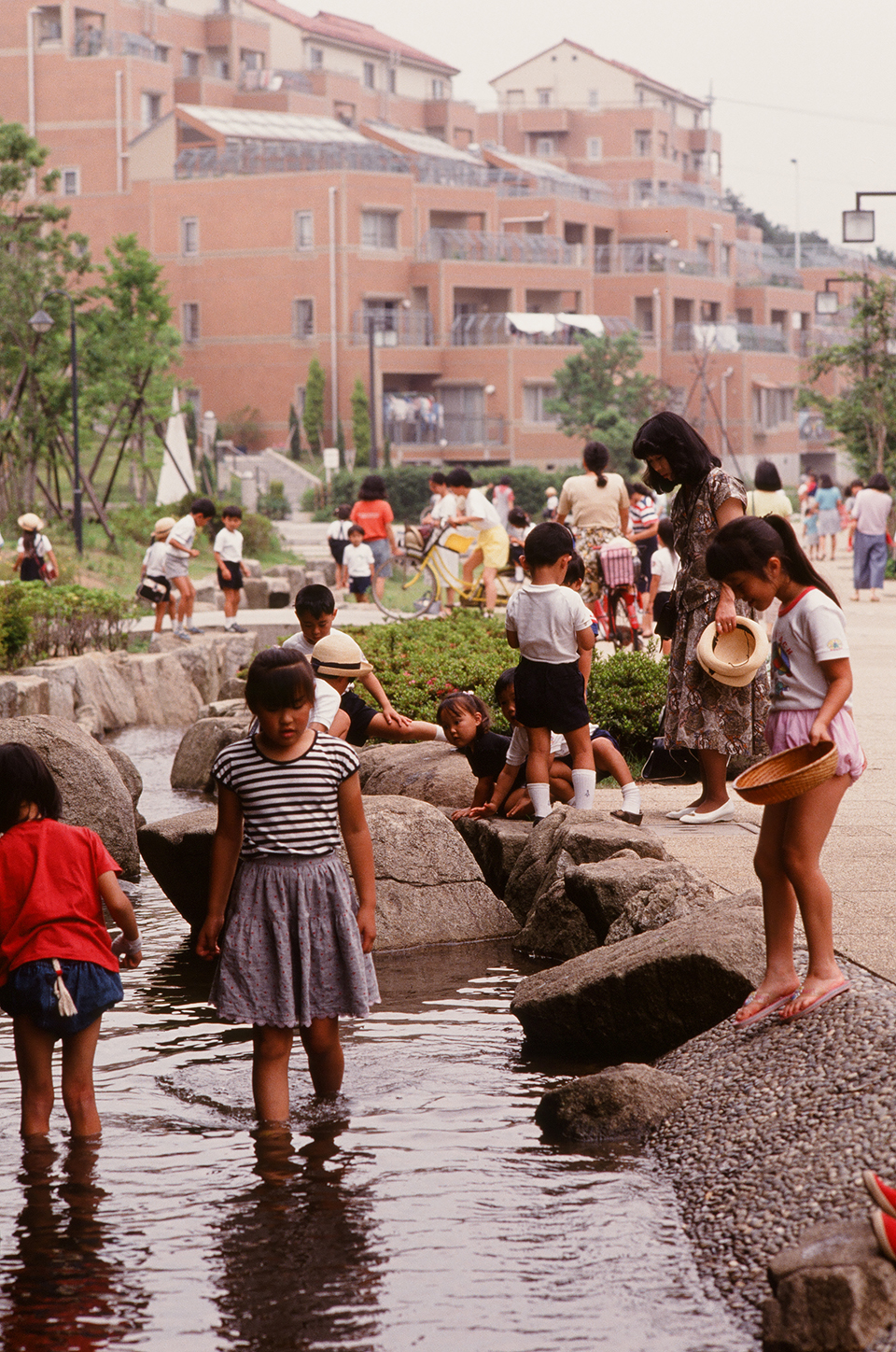 人工河川のある多摩ニュータウンの街並み 1991年6月