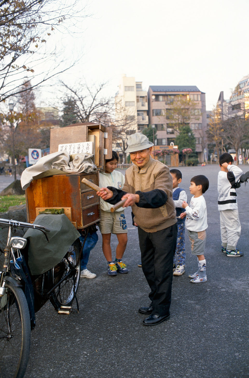 老人ホームのお祭に参加した小学生(立川市)1990年6月