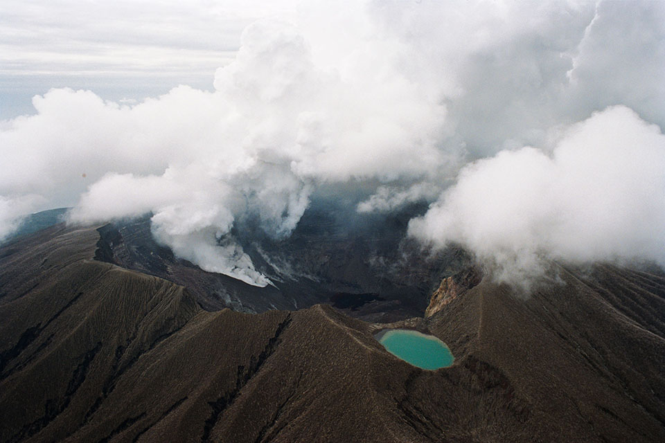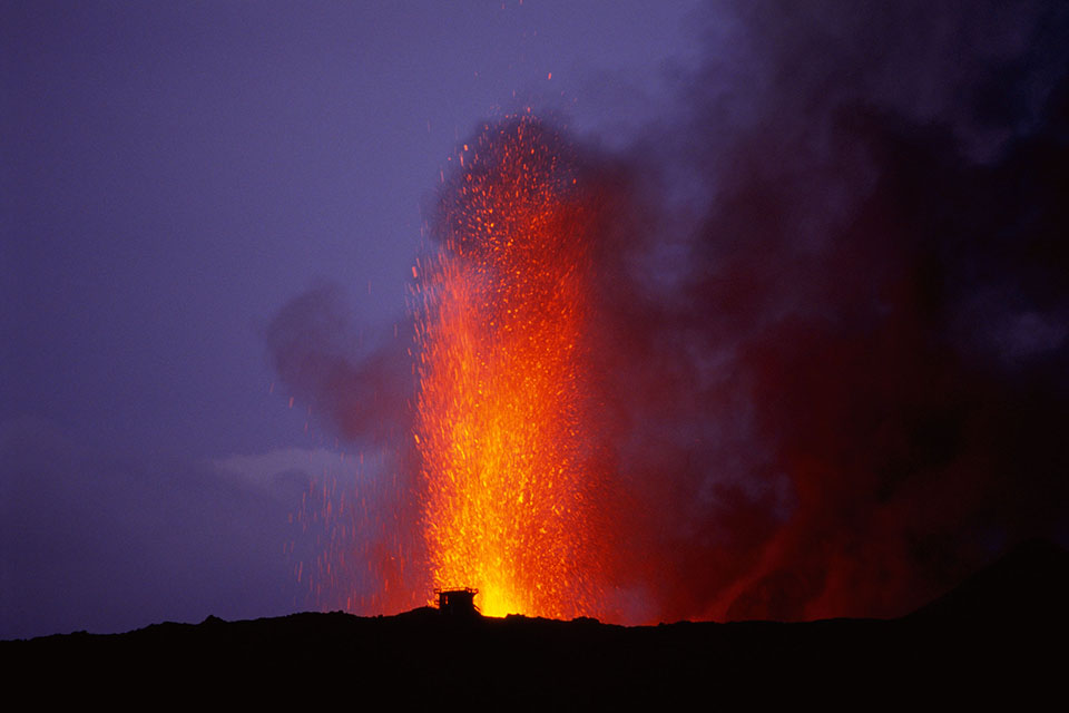 火口から溶岩を噴き上げる三原山(大島町)1986年11月