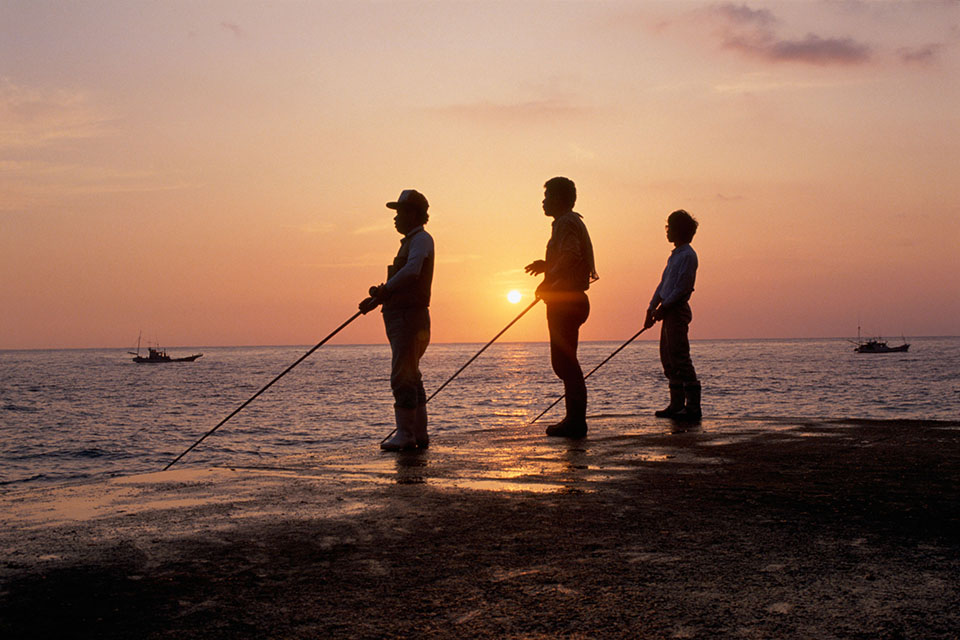 三宝港で釣りをする人達(青ヶ島)1993年11月