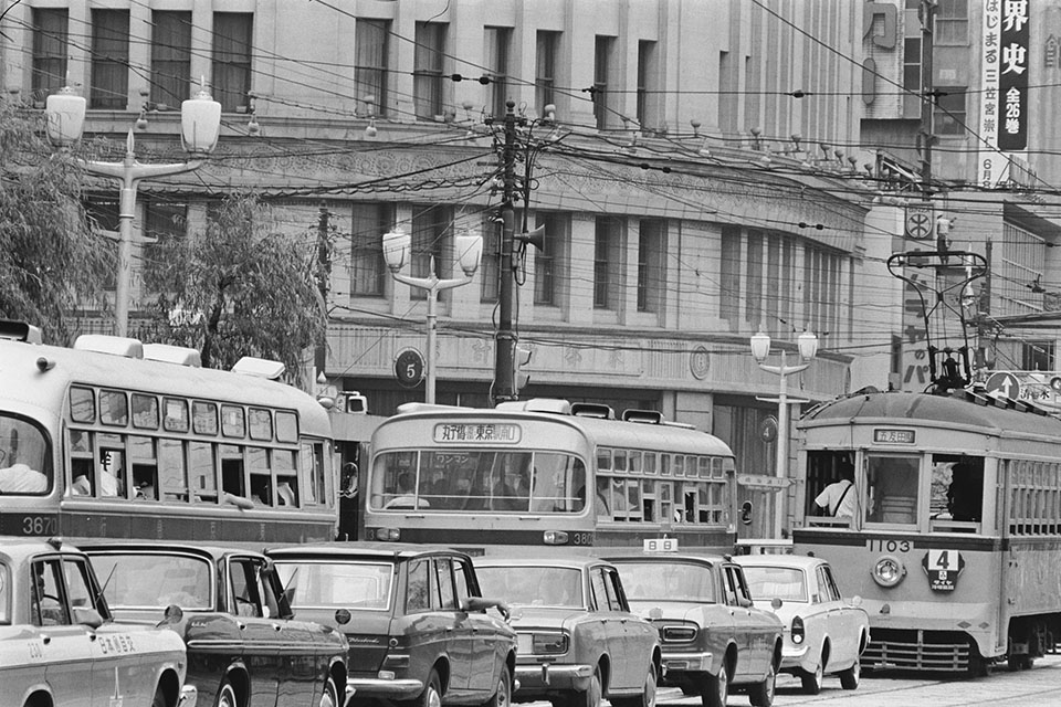 朝の自動車ラッシュ(丸の内) 1954年2月
